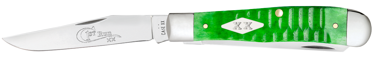 The Case XX 81440 Trapper is a limited First Production Run edition of only 250 pieces, featuring eye‑catching Gator Jig Blue Bone handles paired with a Nickel Silver Diamond XX Inlay shield for a bold and highly collectible presentation. Built on the classic 6207 SS Mini Trapper pattern, this knife includes two mirror‑polished Tru‑Sharp Surgical Stainless Steel blades—a Clip and Spey—designed for excellent edge retention and corrosion resistance. Measuring 3.5 inches closed, with both blades approximately 2.75 inches, the 81440 offers a compact, pocket‑friendly size while delivering reliable everyday performance. Finished with polished nickel silver bolsters and brass liners, and handcrafted in the USA, this vibrant blue‑bone edition stands out as a premium collector’s piece that blends striking color with Case’s traditional craftsmanship.
